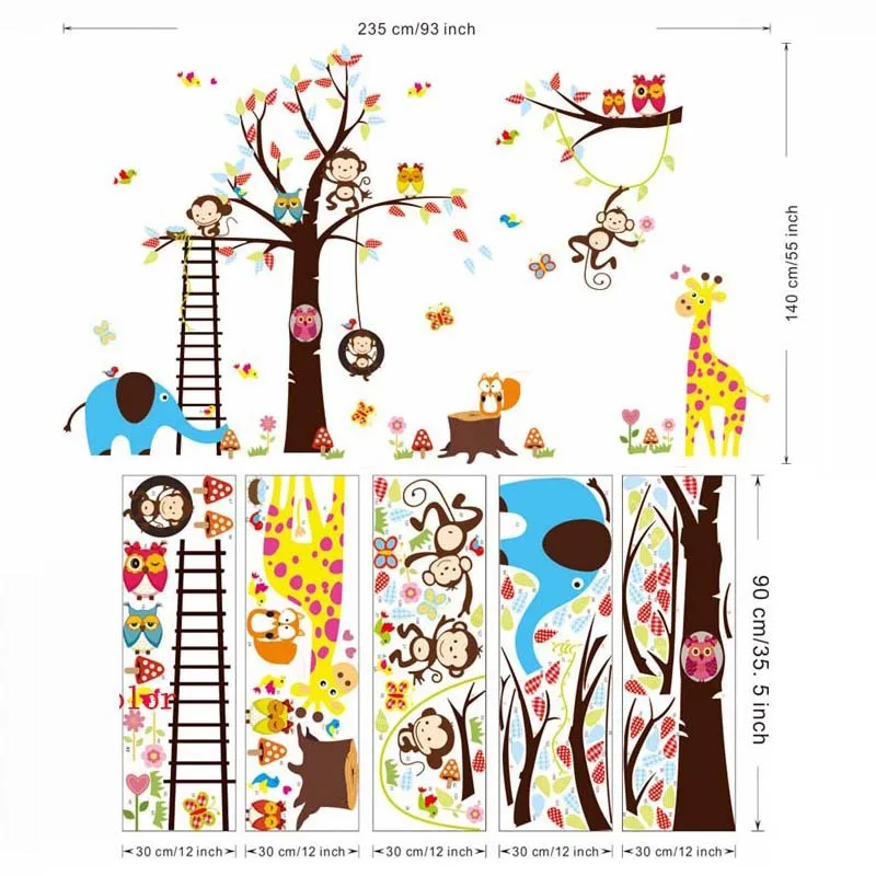 Related Product for % large tree animal wall stickers for kids room home decoration monkey owl zoo cartoon diy children